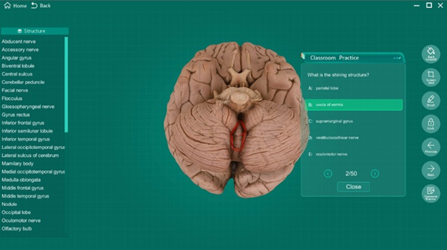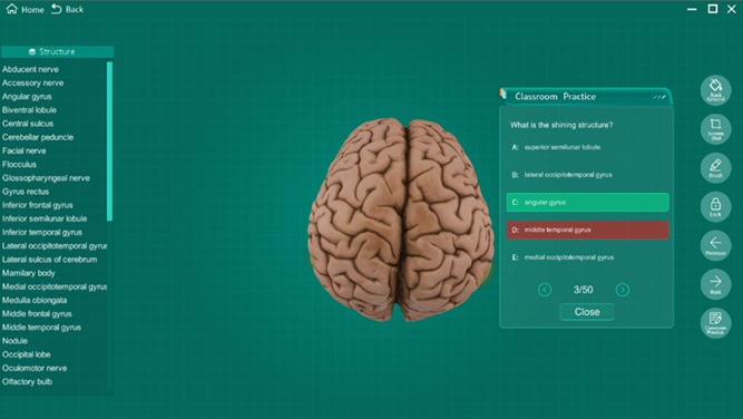 A correct answer with a green background also appears. In this mode, it will help students learn anatomy efficiently.
