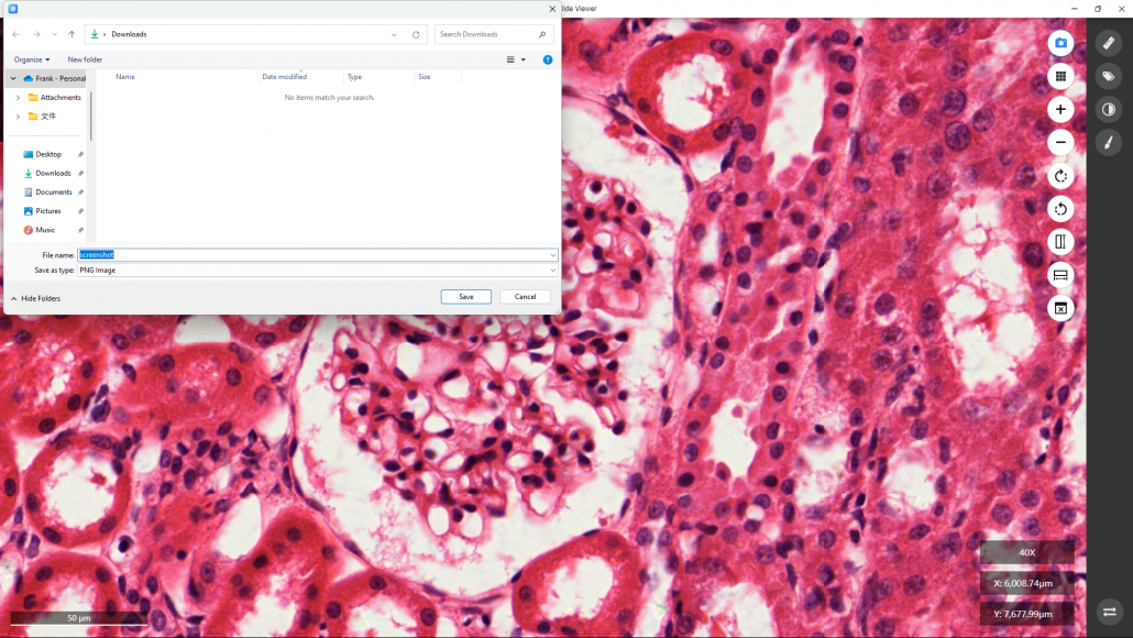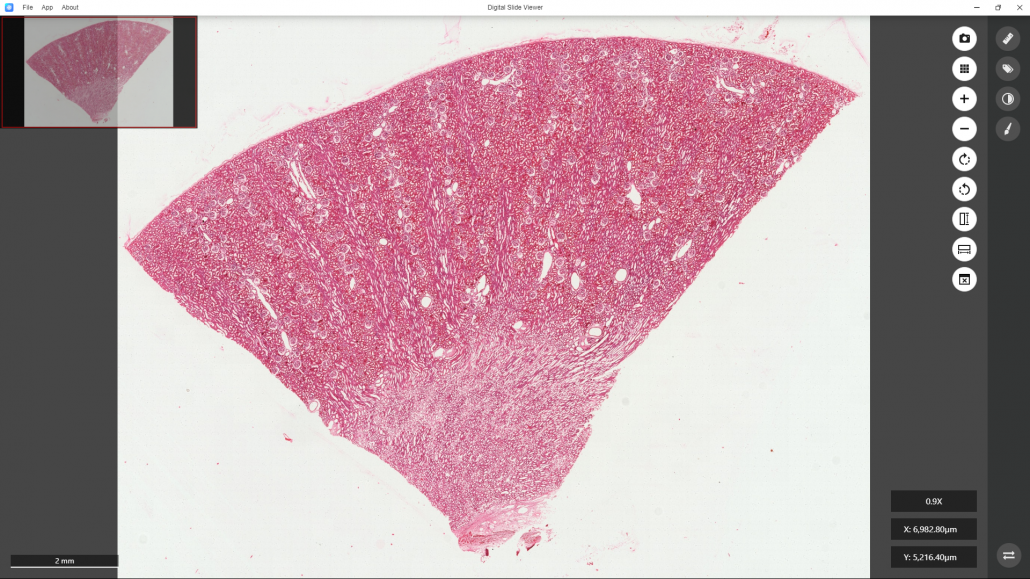 At the end of observing this digital slide, if you want to switch to the other digital slide, just close the DS Viewer by clicking “X” at the top right corner of the window.