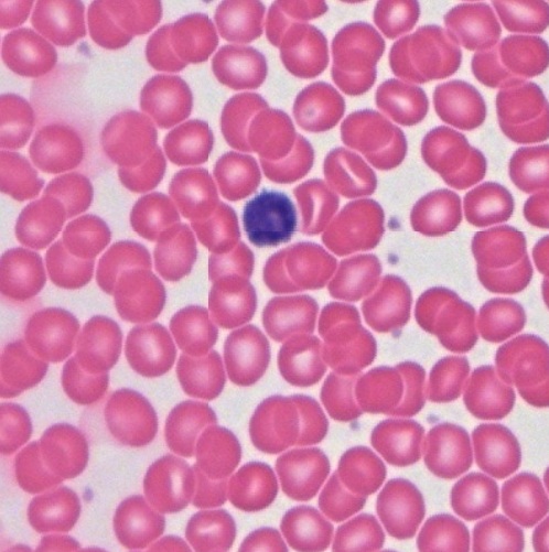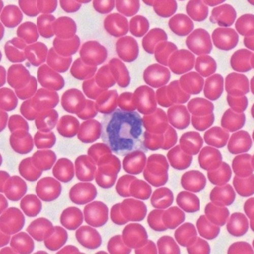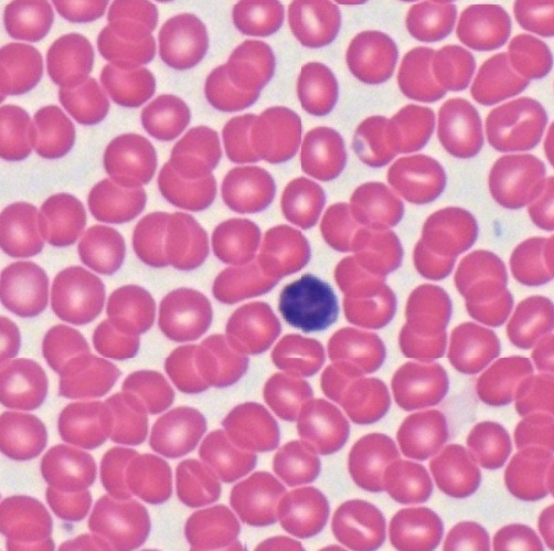 It is also known as erythrocyte and is the only unnucleated cell type in human body. The loss of nuclei of erythrocytes during formation make them to be a biconcave disc shape with a pale stained central region. Their cytoplasm is eosinophilic or acidophilic and stained pink by Giemsa stain (Fig. 5-1), rose red by hematoxylin-eosin stain (Fig. 5-2), and stained blue gray by Wright stain (Fig. 5-3).