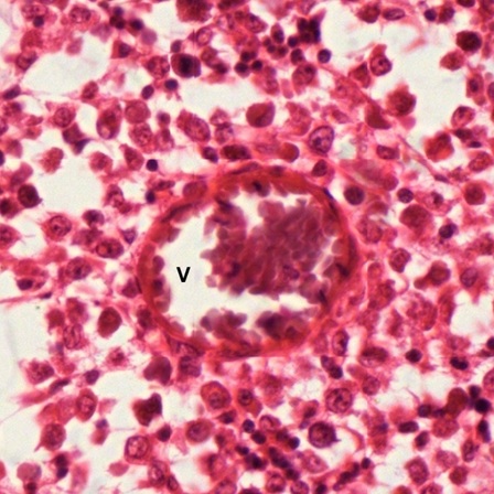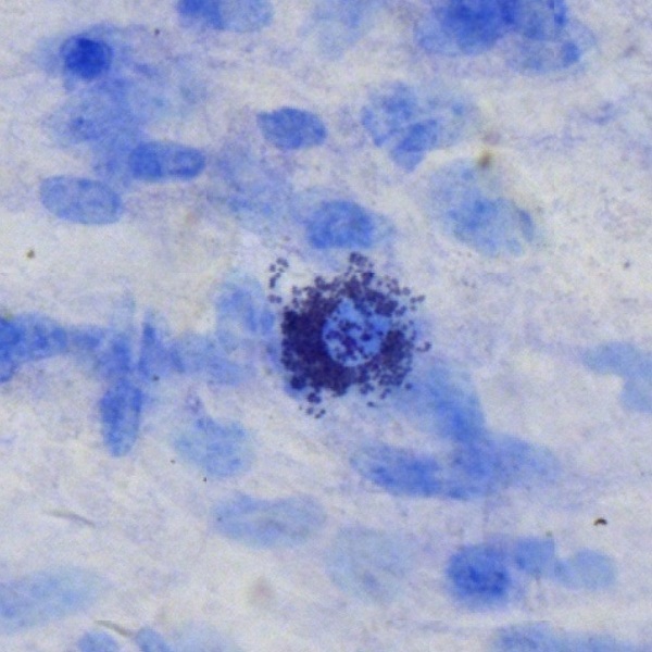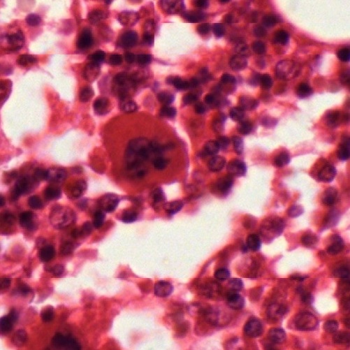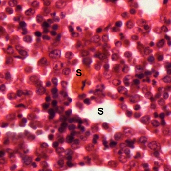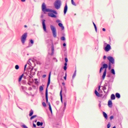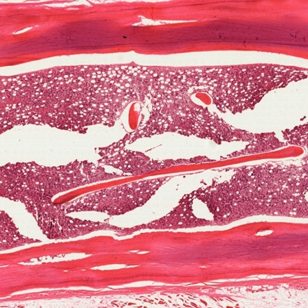 Blood is a specialized type of connective tissue, composed of red blood cells, white blood cells, cell fragments (platelets), and plasma, a fluid extracellular element. It circulates throughout the body within an organization of vessels, including arteries, veins, and capillaries with rive force coming from continuous pumping of the heart. All blood cells develop from a single pluripotential hemopoietic stem cell. Most of these pluripotential hemopoietic stem cells and other hemopoietic stem cells of adults are located in the red bone marrow of short and flat bone. Smear is a common preparation with either Wright stain or Giemsa stain used to observe blood cells and hemopoietic stem cells. Occasionally the routine hematoxylin-eosin stain is also used.