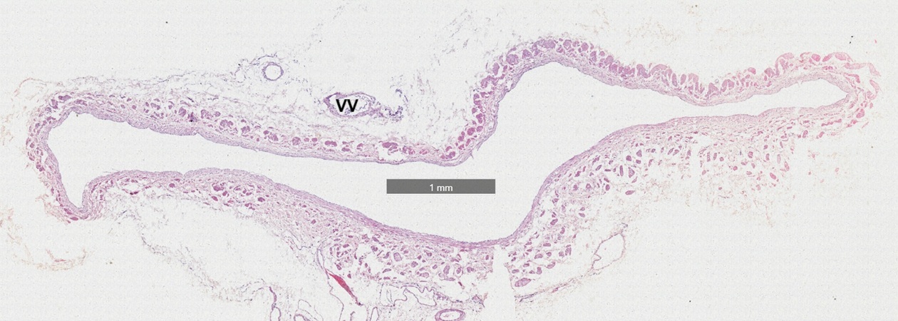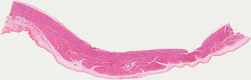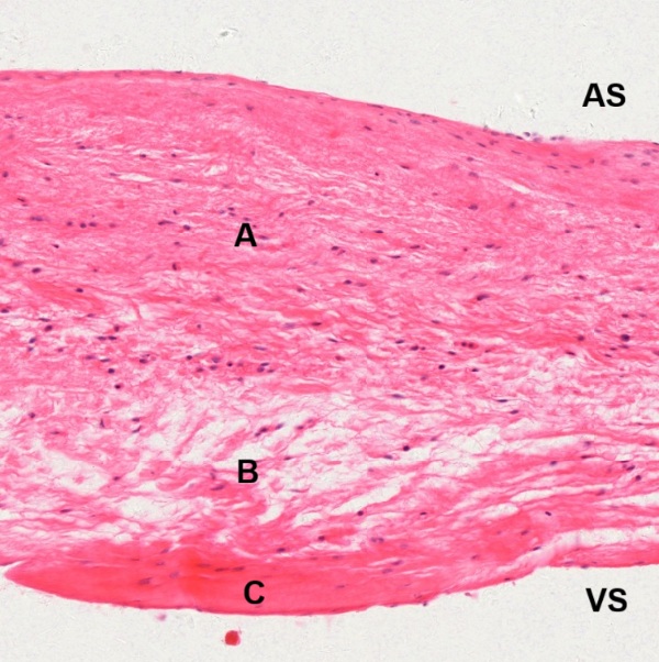 H060060 Mitral Valve, ls. of bicuspid valve, human, HE. (Figs. 8-27, 8-28, 8-29, 8-30, 8-31, 8-32, 8-33, 8-34, 8-35, 8-36, 8-37)
