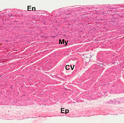 Note: Detailed histological structure of cardiac muscle and connective tissue, please go back to the chapters Muscular Tissue and Connective Tissue for review.