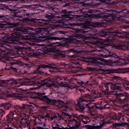 VE = Verhoeff’s elastic stain, is used to stain elastic fibers and cell nuclei black, collagen fibers red, and other tissue elements yellow.