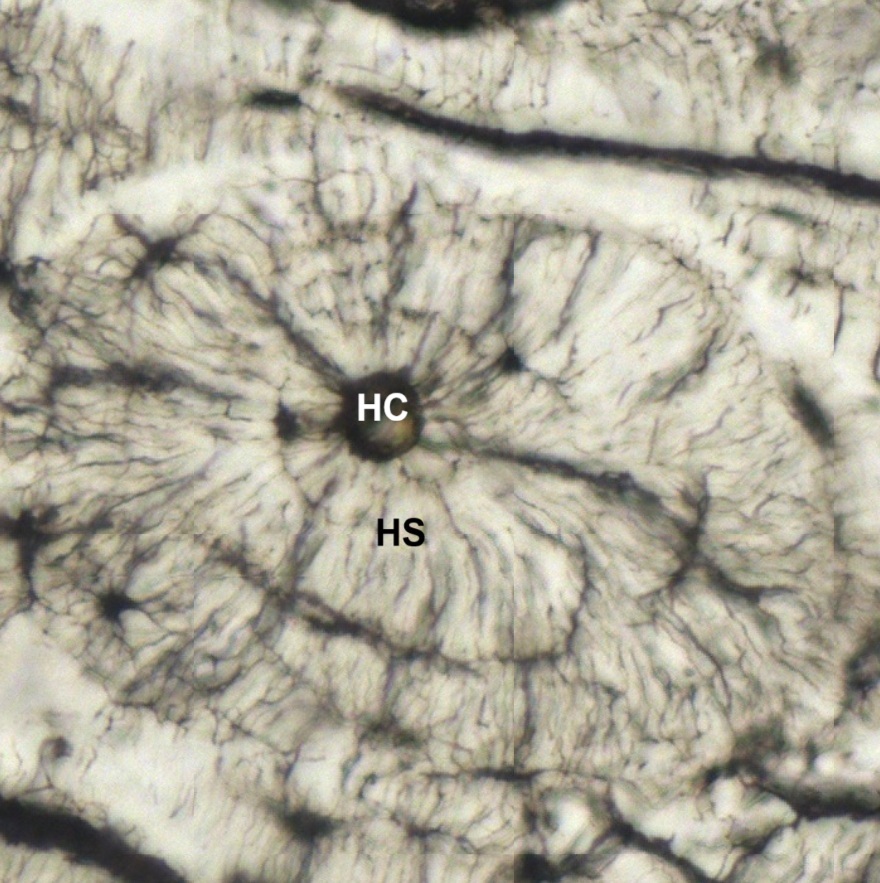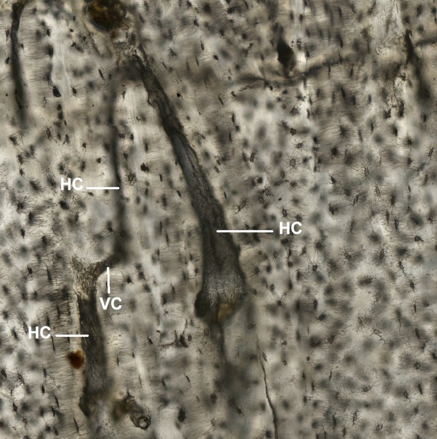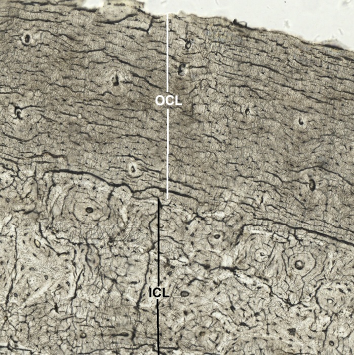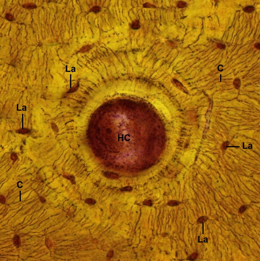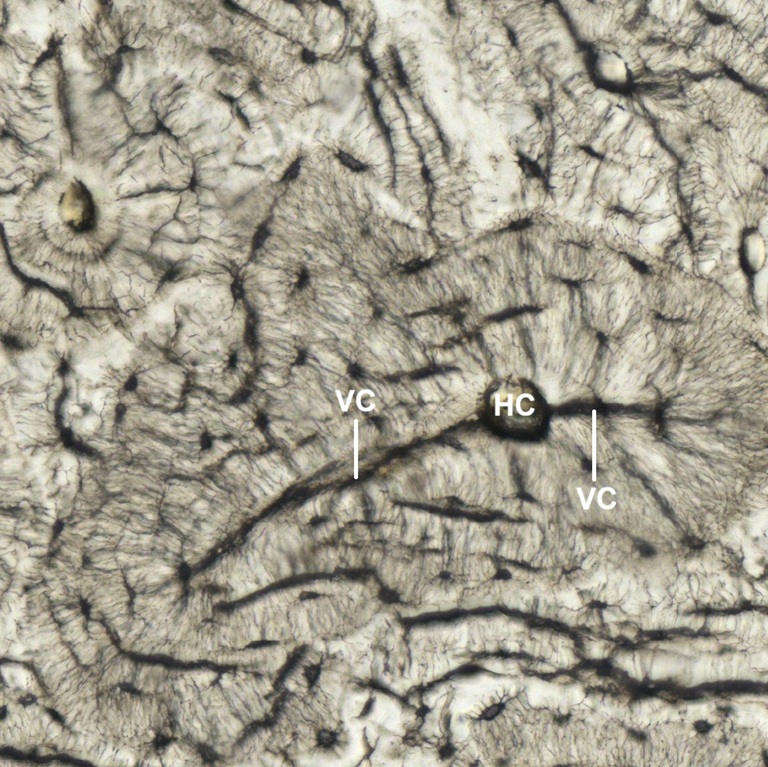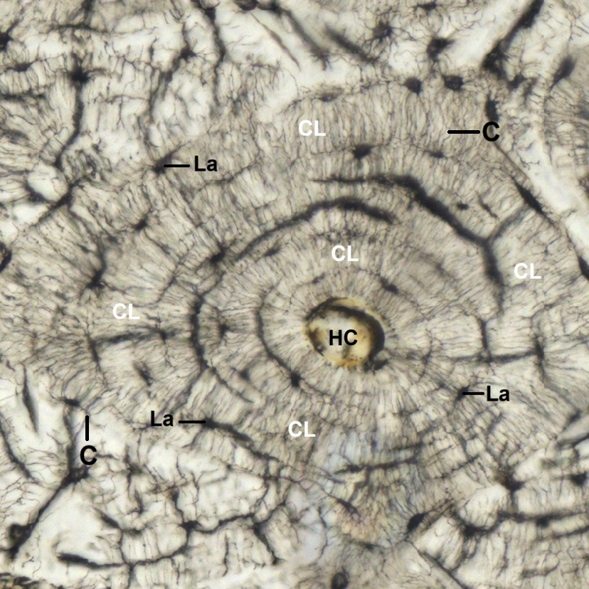 H030102 Compact Bone, ground preparation, cs., human. (Figs. 4-13, 4-14, 4-15, 4-16)