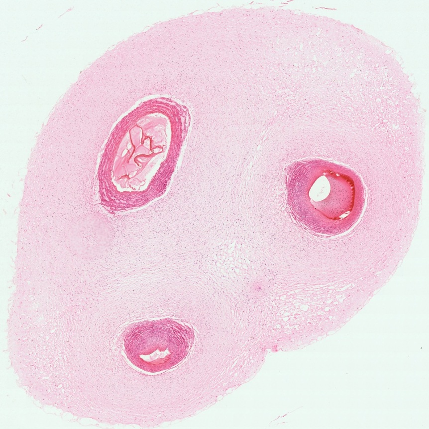 H030040 Mucous Tissue, cs. of umbilical cord, human HE. (Figs. 3-31, 3-32, 3-33)