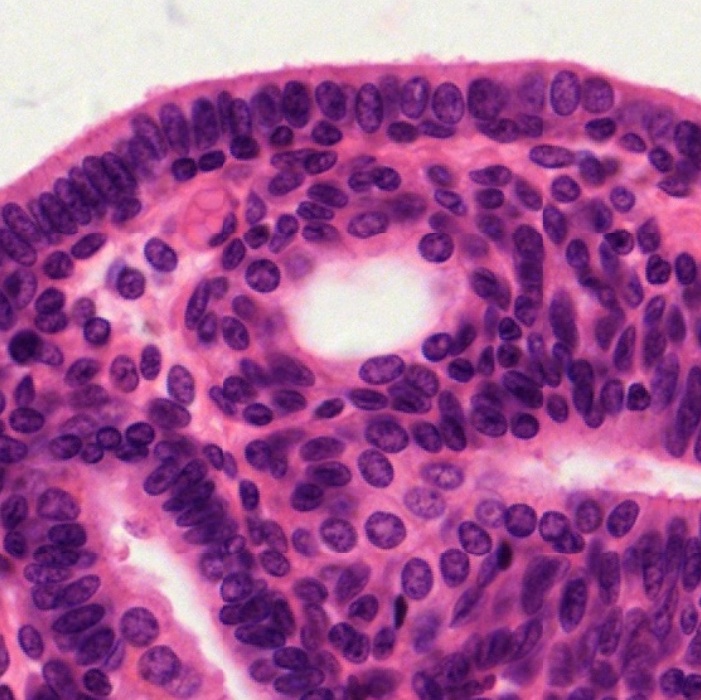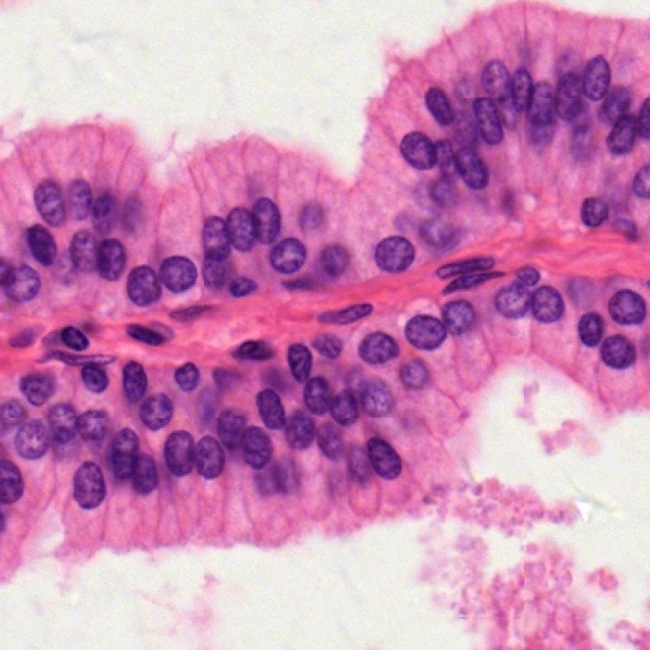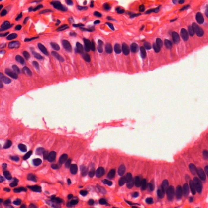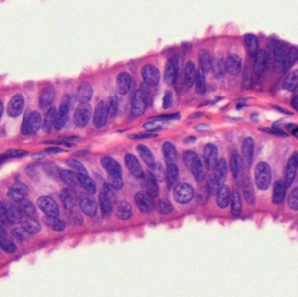H020090 Simple Ciliated Columnar Epithelium, cross section of oviduct, human, HE. (Fig. 2-20)