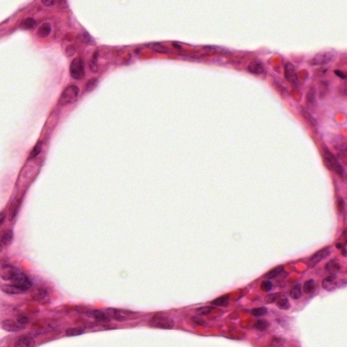 H020030 Simple Cuboidal Epithelium, thyroid gland sec. showing follicles, human, HE.