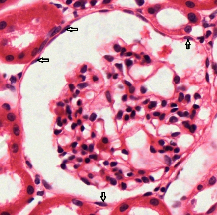 H020020 Simple Squamous Epithelium, kidney sec. showing Bowman’s capsule, human, HE. (Figs. 2-6, 2-12)