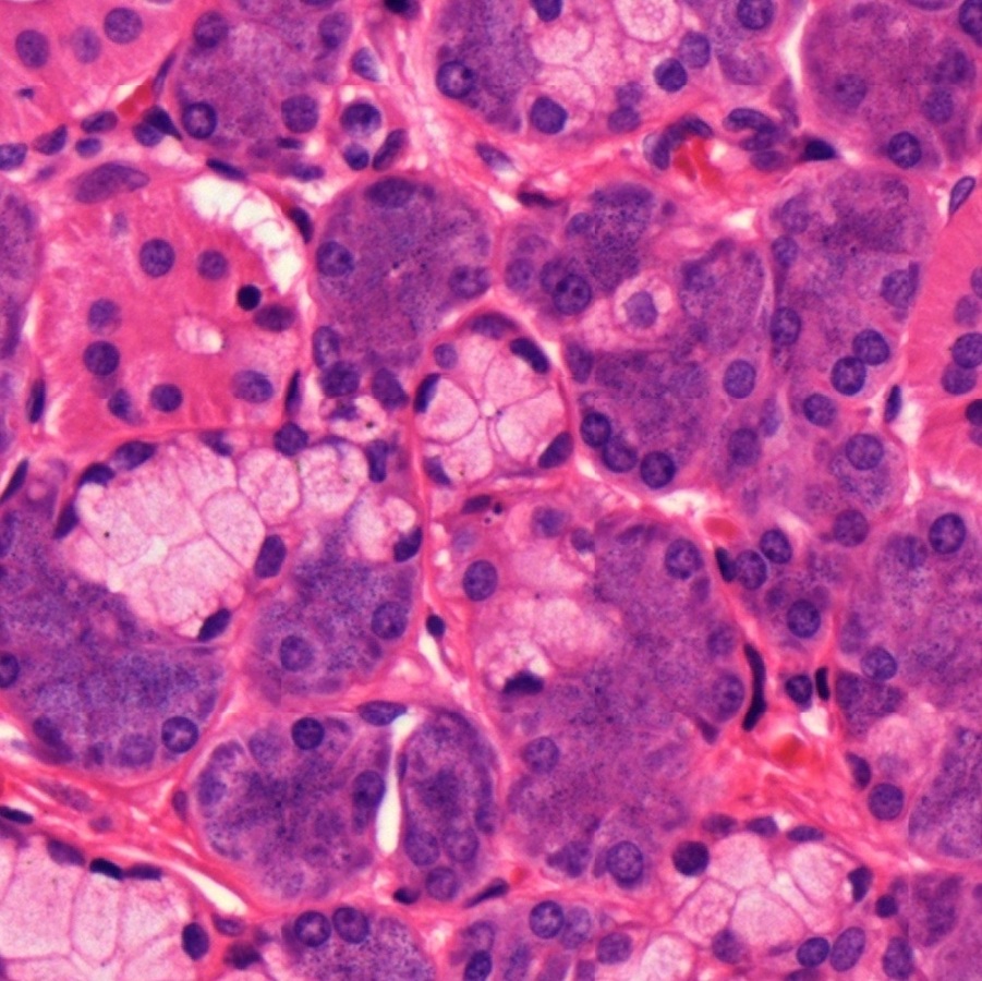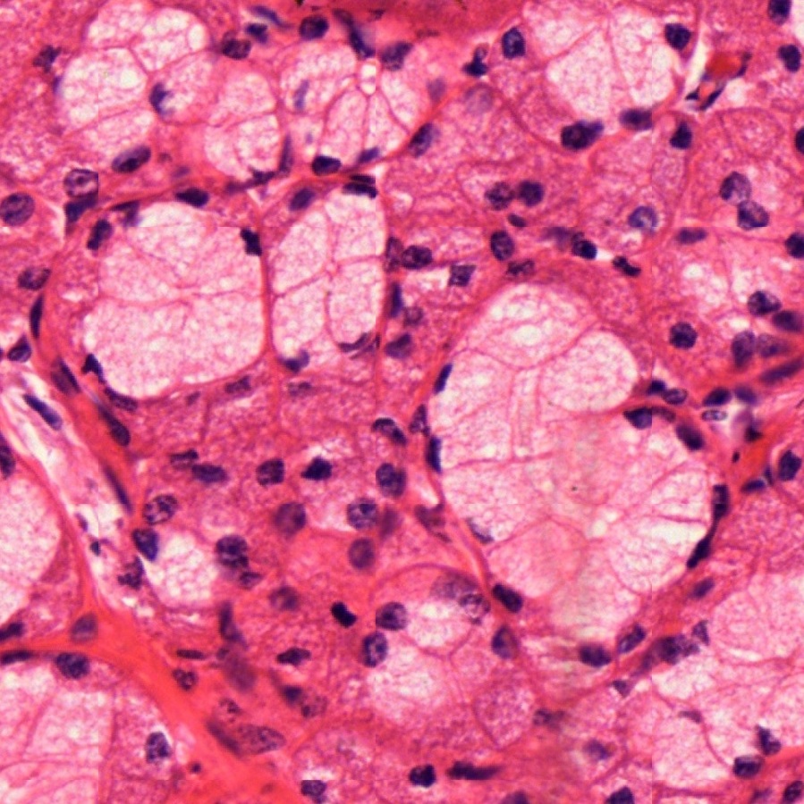 H090090 Sublingual Gland, sec., human, HE. (Figs. 2-10, 2-61, 2-71)