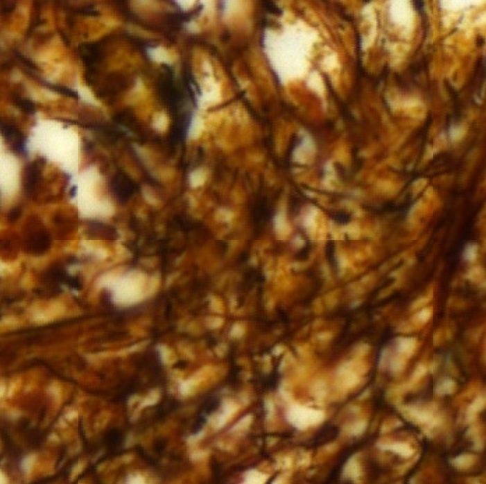 SI = silver impregnation, is used to demonstrate neurons and processes in black or brown.
