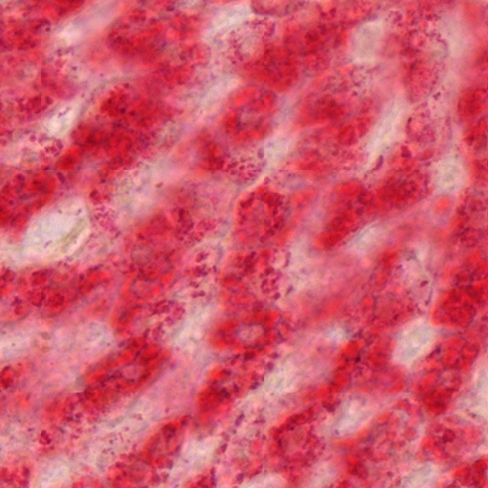 H090302 Liver, sec. showing glycogen, human, PAS. (Fig. 1-33)