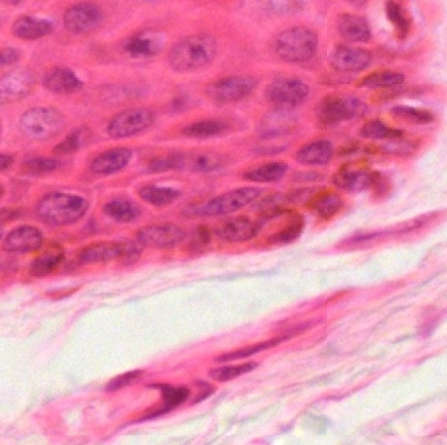 H010010 Male Oral Epithelium, smear of scrape from male mouth, HE. (Figs. 1-1, 1-61, 1-62)