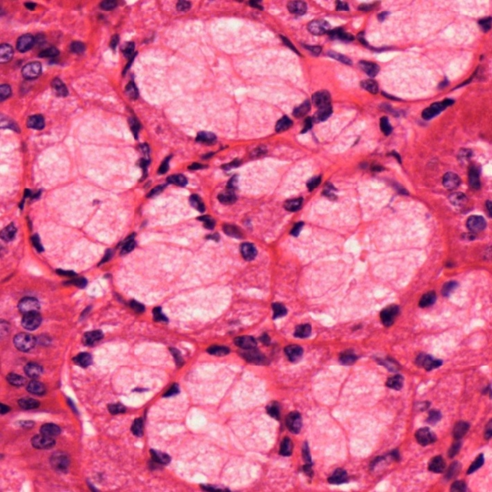 H090090 Sublingual Gland, sec., human, HE. (Fig. 1-4)