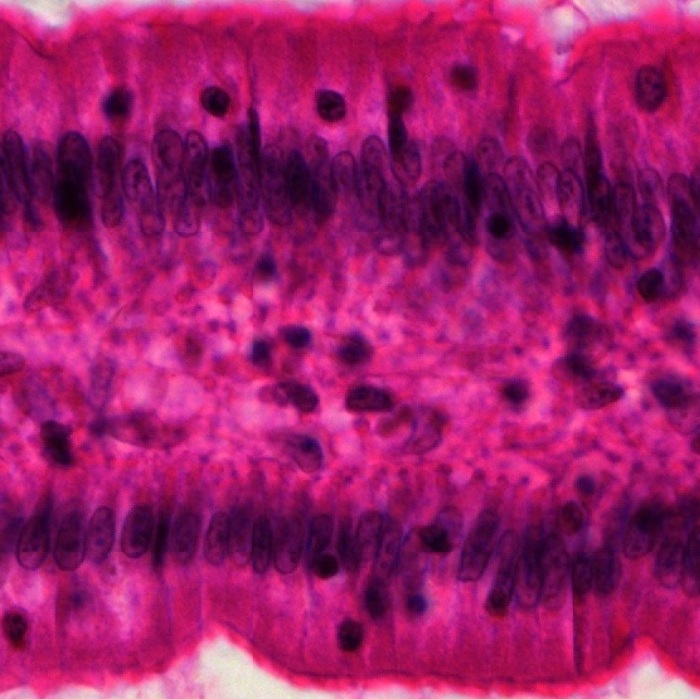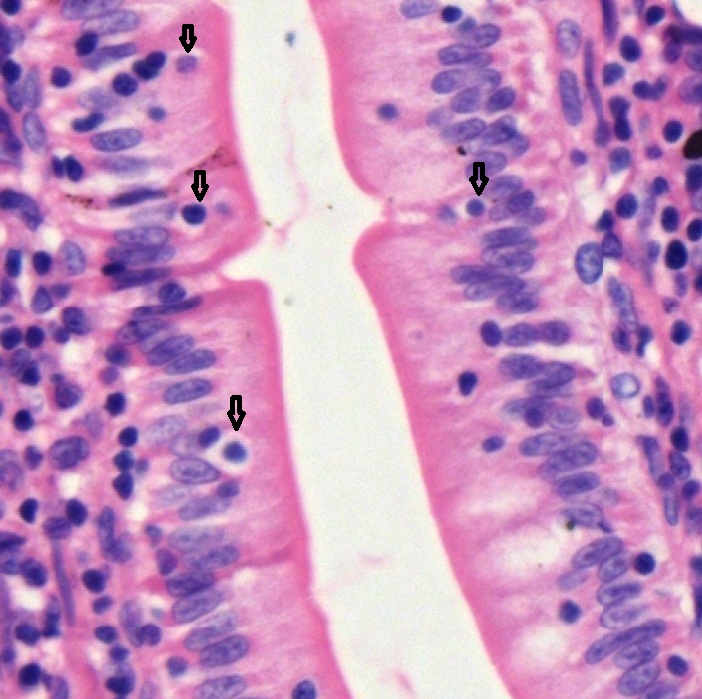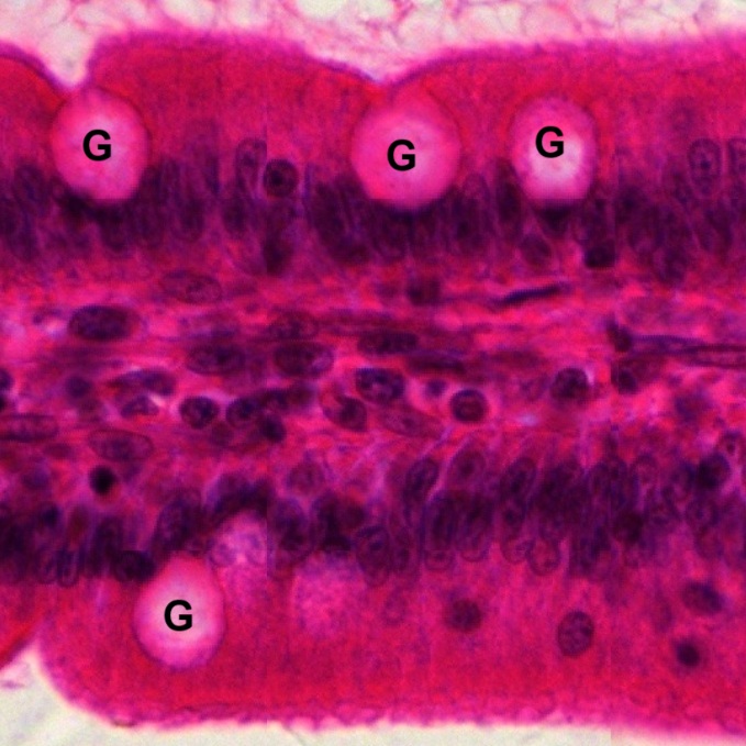 H010101 Goblet Cell, cs. of jejunum, mammal, HE. (Fig. 1-40)