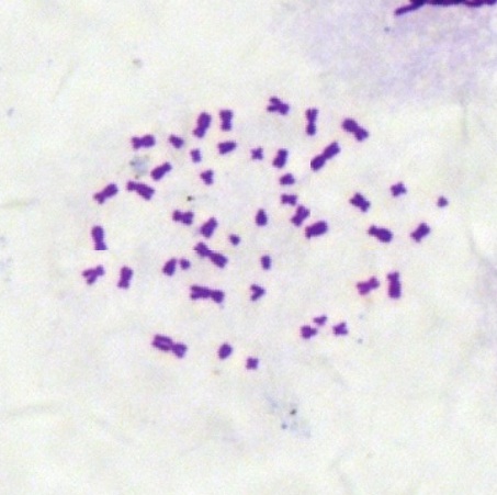 Humans typically have 23 pairs of chromosomes, or 46 chromosomes. These chromosomes contain genetic information that determines human characteristics. Twenty-two of these pairs are autosomes. They are the same in both males and females. The 23rd pair, the sex chromosomes, differ between males (XY) and females (XX). To observe human chromosomes under the light microscope, cultured human blood lymphocytes are prepared to break the nuclei and spread on glass slide, followed by staining with Giemsa stain. Figures 1-45 and 1-46 show male chromosomes. Figures 1-47 and 1-48 show female chromosomes.