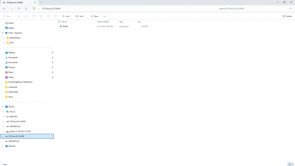 Once the USB is plugged into your PC or laptop, a “OHOP” App is shown in the virtual CD Drive.